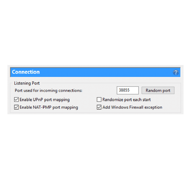 এই দুইটি “UPnP” NAT পোর্ট ফরওয়ার্ডিং এ ব্যবহৃত হয় এগুলো সরাসরি পোর্ট ফরওয়ার্ড করে। এই প্রোটোকল গুলো আপনার টরেন্টকে এর সাথে কানেক্ট হতে সাহায্য করে। পোর্ট গুলো এনে-বল করতে নিচের মত সেটিং করুন। প্রথমে Options > Preferences > Connection যান এবং “Enable UPnP ও NAT-PMP port mapping” টিক করে দিন।