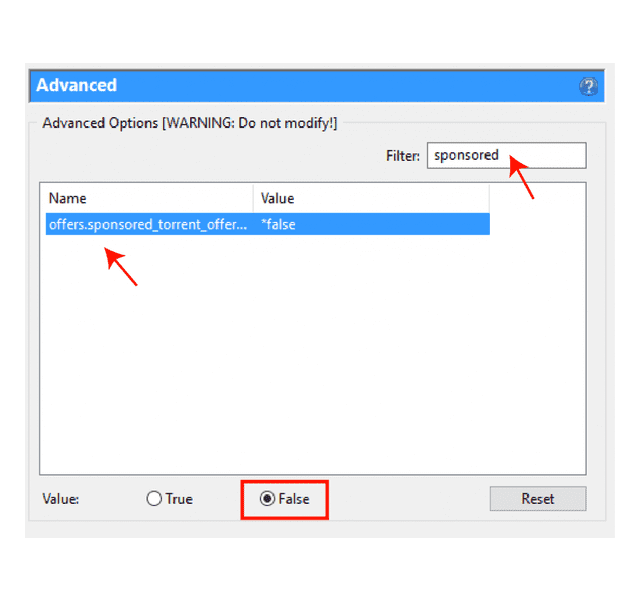 ওরা ডিফল্ট ভাবে এড flags গুলোতে “True” করে দিয়েছে আমাদের এটিকে “False” করতে হবে তাই, প্রথমে “sponsored” দিয়ে খুঁজুন এবং বন্ধ করার জন্য এটিকে “False” করে দিন।
