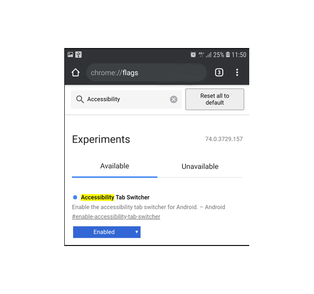 accessibility tab switcher এনে-বল করে দিন। এবার Relaunch Now ক্লিক করুন।