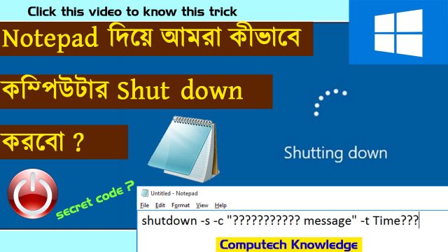 না না Shut down অপশান ব্যবহার করে নয় Notepad দিয়ে। তাহলে শুরু করা যাক.