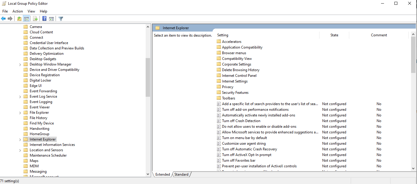দুর্ভাগ্যবশত Internet Explorer এ কোন হিডেন কনফিগারেশন পেজ নেই তবে Group Policy Editor এর মাধ্যমে Internet Explorer এর এডভান্স কিছু কনফিগারেশন করতে পারবেন। চলুন ধাপ গুলো দেখে নেয়া যাক।