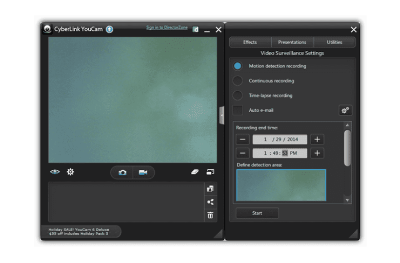 এই Cyberlink YouCam সফটওয়্যারে আপনি টাইম ফ্রেম নির্দিষ্ট করে দিতে পারবেন এবং মোশন ডিটেক্ট করার জন্য নির্দিষ্ট এরিয়া সিলেক্ট করতে পারবেন। এর ইমেইল ফিচারটি 5 ভার্সনের জন্য ফ্রিতে পাবেন না, আপনাকে প্যাকেজ কিনতে হবে তবে এর 4 ভার্সনে এটি ফ্রিতেই পেয়ে যাবেন৷ তাই আপনি ফ্রিতে ইমেইল ফিচার পেতে চাইলে এর 4 ভার্সন ব্যবহার করতে পারেন।