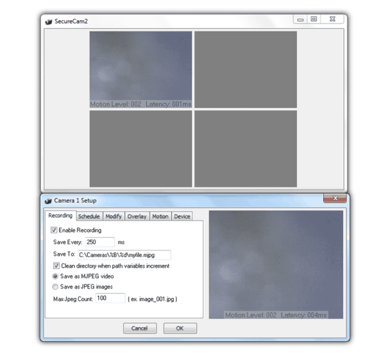 ওয়েব-ক্যামেরার যাবতীয় ব্যাসিক ফিচার আছে SecureCam 2 তে। SecureCam 2 এর ইন্সটলেশন ফাইল 343KB এর মত। এর মাধ্যমে আপনি ম্যানুয়াল ভিডিও রেকর্ডিং, অটোমেটিক ভিডিও রেকর্ডিং এবং শিডিউল ভিডিও রেকর্ডিং করতে পারবেন সাথে পাবেন মোশন ডিটেকশন, ফ্রেমে টেক্সট ওভার লেপ এবং অনলাইন স্ট্রিমিং। SecureCam 2 এর সাথে আরও পাবেন একটি ভিডিও প্লেয়ার যা দিয়ে MJPG ভিডিও রান হয়।