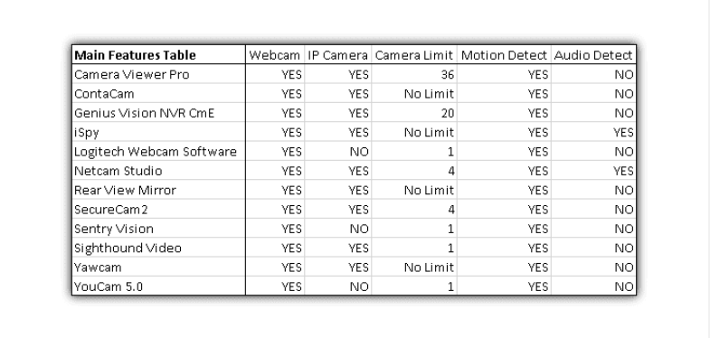 আমরা যদি ব্যাসিক ফিচারের দিকে খেয়াল করি তাহলে দেখতে পাচ্ছি সব গুলো সফটওয়্যারই ওয়েবক্যাম এবং মোশন ডিটেক্ট করতে পারে। এর মধ্যে শুধু মাত্র iSpy এবং Netcam Studio অডিও ডিটেক্ট করতে পারে যার মাধ্যমে শিশুর কান্নার সাউন্ড মনিটর করা যায়।