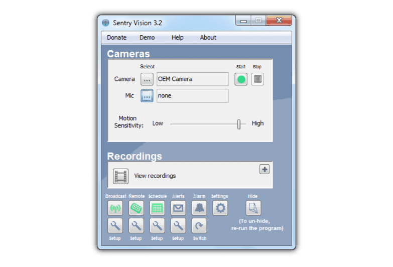 Sentry Vision একটি ফ্রি ওয়েবক্যাম নজরদারি সফটওয়্যার যা শুধু মাত্র ওয়েবক্যামে কাজ করে IP ক্যামেরায় কাজ করতে পারে না। এটি ভিডিও এবং অডিও দুটিই রেকর্ড করতে পারে যদি কম্পিউটারে মাইক্রোফোন কানেক্ট থাকে। এখানে অন্য সফটওয়্যার গুলোর মতই পাবেন, Motion Detection, Broadcast, Schedule, Email এবং Sound Alert।