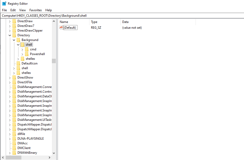 এবার HKEY_CLASSES_ROOT\Directory\Background\ এ যান