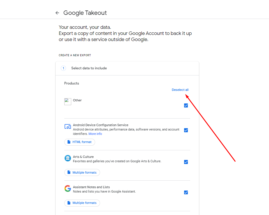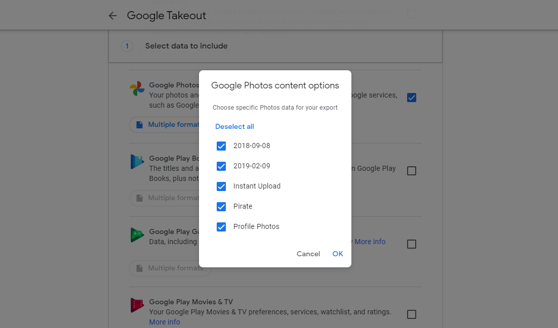 প্রথমেই Google Takeout ওয়েবসাইটে চলে যান। আপনার গুগল একাউন্ট থেকে সাইনইন করুন। Deselect এ ক্লিক করুন কারণ আমরা শুধু মিডিয়া ফাইল গুলো এক্সপোর্ট করব।