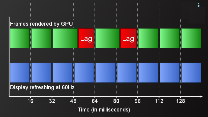 ধরুন আপনার মনিটর হচ্ছে 60 Hz রিফ্রেশ রেটের এখন GPU যদি ৬০ এর কম ইমেজ জেনারেট করে তখন মনিটর পর্যাপ্ত ইমেজ পাবে না এবং ভিডিও ধীরে ধীরে শো করবে এটাকে বলা হয় Screen Stuttering।