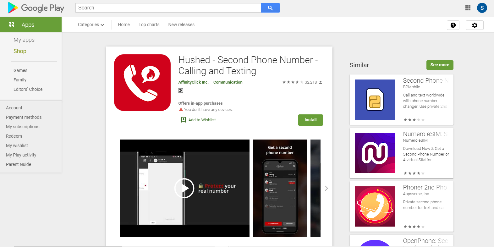 Burner এর মতই Hushed ও আপনাকে বিভিন্ন দামে টেম্পোরারি নাম্বার দেবে। ১.৯৯ ডলারে সাতদিনে আপনি পাবেন ৬০ টি এসএমএস এবং ২০ মিনিট। তাছাড়া রয়েছে ৪.৯৯ ডলারে মাসিক আনলিমিটেড প্ল্যান।