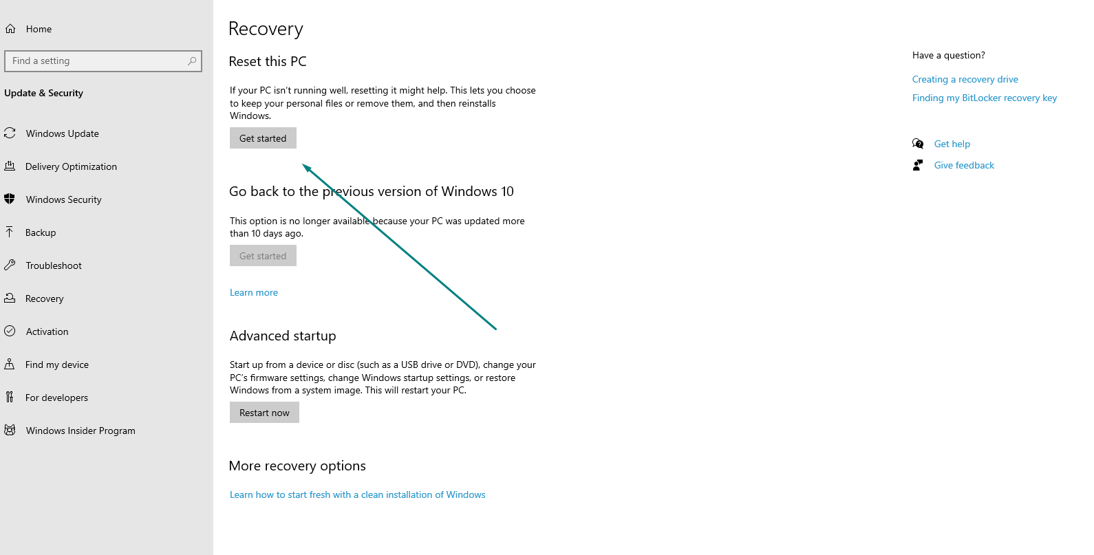 ফিচারটি খুঁজে পেতে প্রথমে আপনার স্টার্ট-ম্যানু থেকে চলে যান Settings এ তারপর Update & Security তে গিয়ে Recovery সেকশনে ক্লিক করুন। এবার "Reset This PC" অপশনটি খুঁজে পাবেন এবং পিসি রিসেট দিতে Get Started এ ক্লিক করুন।