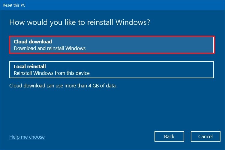 আগের Windows 10 ভার্সনে "Reset This PC" ফিচারটি লোকাল ডিস্ক থেকে Windows 10 এর ইন্সটলেশন ফাইল গুলো ব্যবহার করতো। কিন্তু কখনো কখনো লোকাল ডিস্ক থেকে ফাইল গুলো নষ্ট হয়ে গেলে ফ্রেশ ইন্সটল করা সম্ভব হতো। আর এই সমস্যা সমাধানের জন্য মাইক্রোসফট Windows 10 এ যুক্ত করেছে Cloud Download ফিচার। পিসি রিসেট দেবার সময় Cloud Download সিলেক্ট করলে আপনার উইন্ডোজ সরাসরি মাইক্রোসফটের সার্ভার থেকে ইন্সটলেশন ফাইল গুলো কালেক্ট করবে। এবং কোন সমস্যা ছাড়াই ফ্রেশ উইন্ডোজ ইন্সটল হবে।