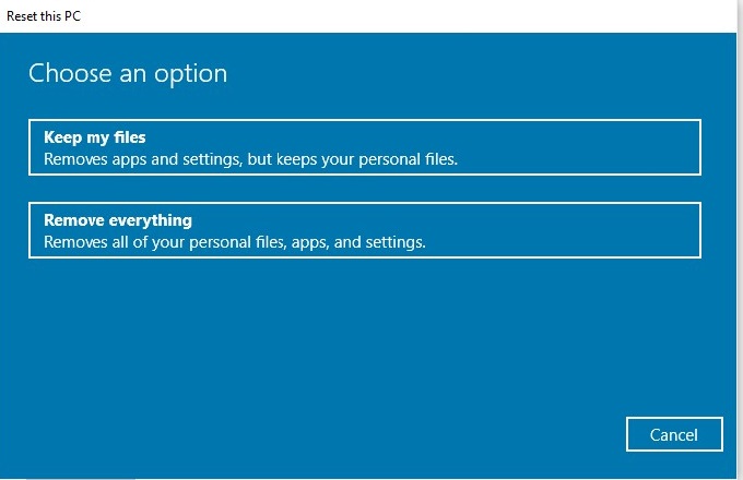 আপনি রিসেট দেয়ার পূর্বে দুটি অপশন পাবেন একটি হচ্ছে, আপনার ব্যক্তিগত কিছু ফোল্ডার রাখতে পারবেন অন্যটি হল সব কিছু ডিলিট করে দিতে পারবেন। আপনি ব্যক্তিগত কিছু ফোল্ডার রাখতে চাইলে Keep My Files এ সিলেক্ট করুন আর যদি চান সব কিছু ডিলিট করে ফ্রেশ উইন্ডোজ, তাহলে Remove Everything এ ক্লিক করুন। মনে রাখবেন Remove Everything এ ক্লিক করলে আপনার C ড্রাইভের সকল ফাইল ডিলিট হয়ে যাবে এবং ইন্সটল করা সব সফটওয়্যার রিমুভ হয়ে যাবে।