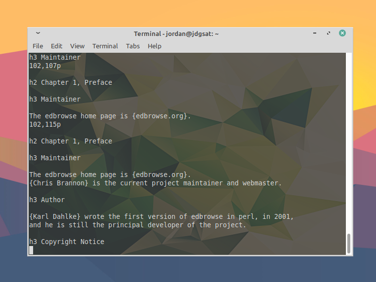 Edbrowse একটি কমান্ড-লাইন ওয়েব ব্রাউজার। এটি ব্রাউজারের কোডটি লিখেছেন Karl Dahlke। কমান্ড লাইন ওয়েব ব্রাউজার হওয়াতে এটিতে পাবেন Terminal এর ব্যবস্থা।