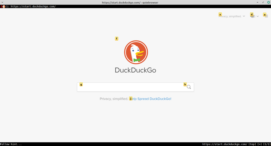 একটি ফ্রি এবং ওপেন সোর্স কিবোর্ড বেসড ব্রাউজার হচ্ছে Qutebrowser। এটি একটি Vim বেসড ব্রাউজার। এটি Vim বেসড ব্রাউজার হওয়াতে Vim ব্রাউজার বা এক্সটেনশন গুলোর মতই F প্রেস করে এটি একটিভেট করা যায়।