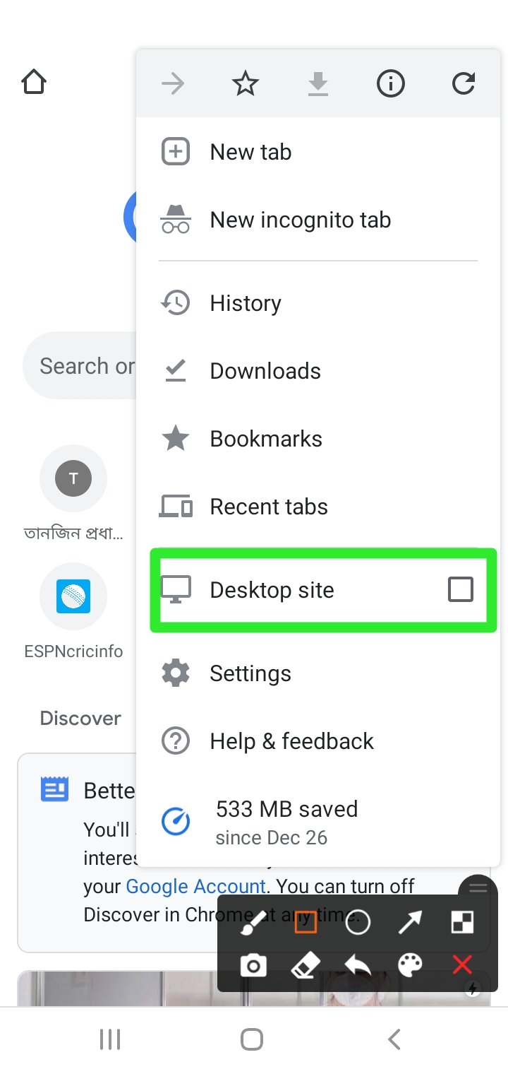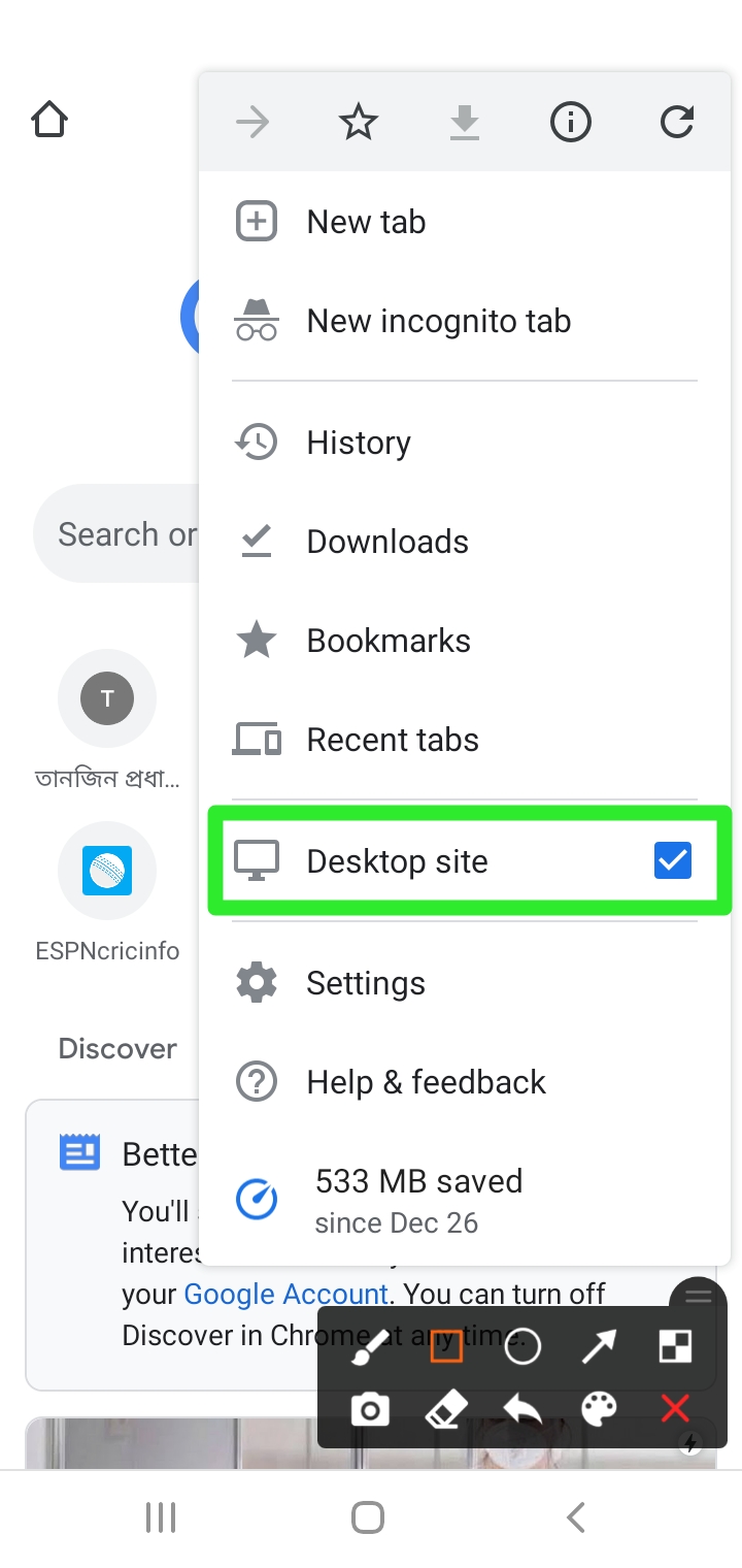 এখানে Dekstop site এ টিক চিহ্ন দিতে হবে।
