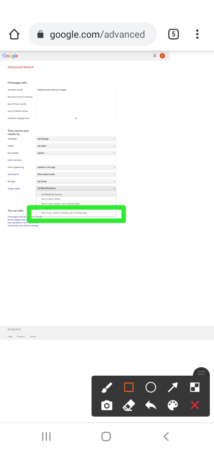 ৮.এখানে আপনাকে কয়েকটি অপশন দিবে। আপনি free to use, share and modify, even commercially এই অপশনটি নিশ্চিত করুন। সাধারণত সর্বনিচে এটি থাকে। কখনো কখনো এখানে মাত্র দুটি অপশন দেয় তখন creative and common licence এটি নিশ্চিত করুন।