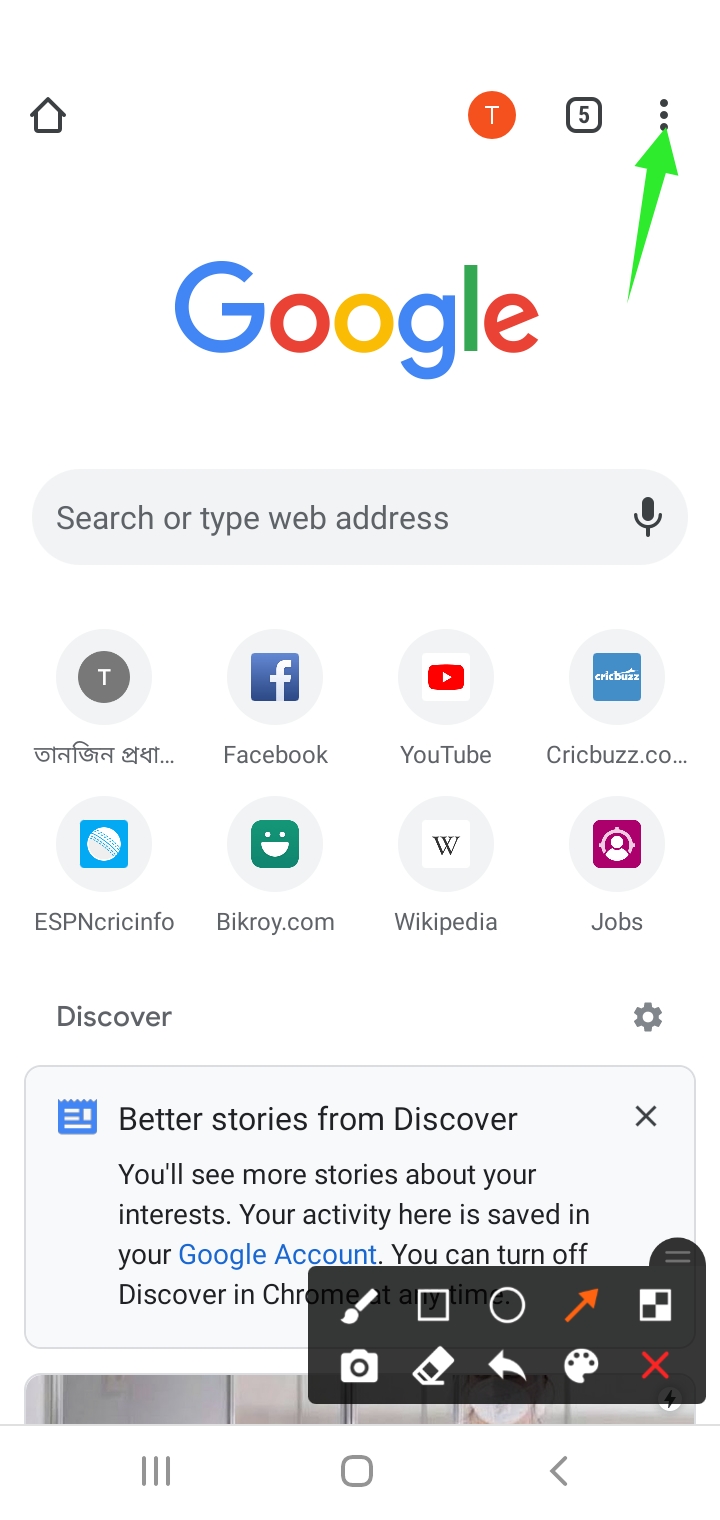 ২.তারপর আমাদেরকে ব্রাউজারের থ্রি ডট এ ক্লিক করতে হবে।