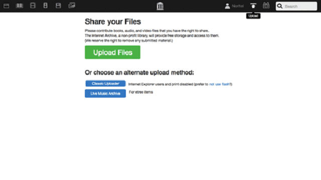 কিছুটা কম পরিচিত Internet Archive এর আরেকটি ফিচার হল এখানে ফাইল আপলোড করার ফিচার। যেখানে আপনি হোমপেজ থেকে সরাসরি বিভিন্ন ডকুমেন্ট আপলোড করতে পারবেন। এই ফিচারটি আপনাকে ভিডিও, মিউজিক, অডিও, ইমেজ, সফটওয়্যার ইত্যাদি ফাইল আপলোডের সুযোগ দেবে। আপলোডের পর যেকোনো সময় চাইলে আন-লিমিটেড ট্রাফিক এটি এক সাথে ডাউনলোড দিতে পারবে কোন ঝামেলা ছাড়াই। এর দারুণ একটি সুবিধা হল এটি এক ফরমেটে আপলোড দেবার পর অটোমেটিক বিভিন্ন ফরমেটে ডাউনলোড করা যাবে।