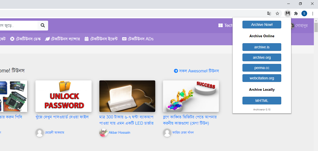 প্রথমে Archiveror এক্সটেনশনটি ক্রোমে অথবা ফায়ারফক্সে এড করে নিন।