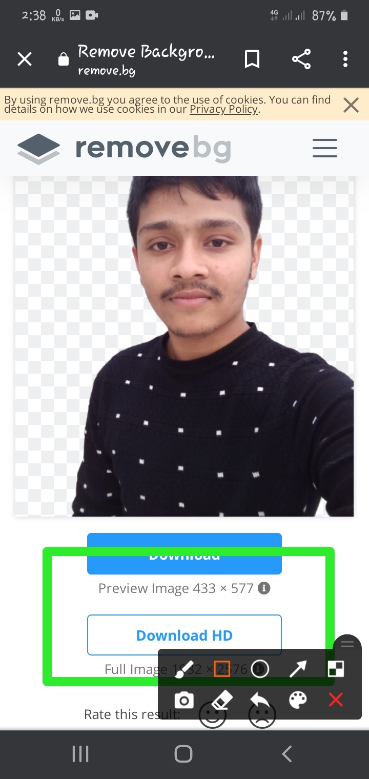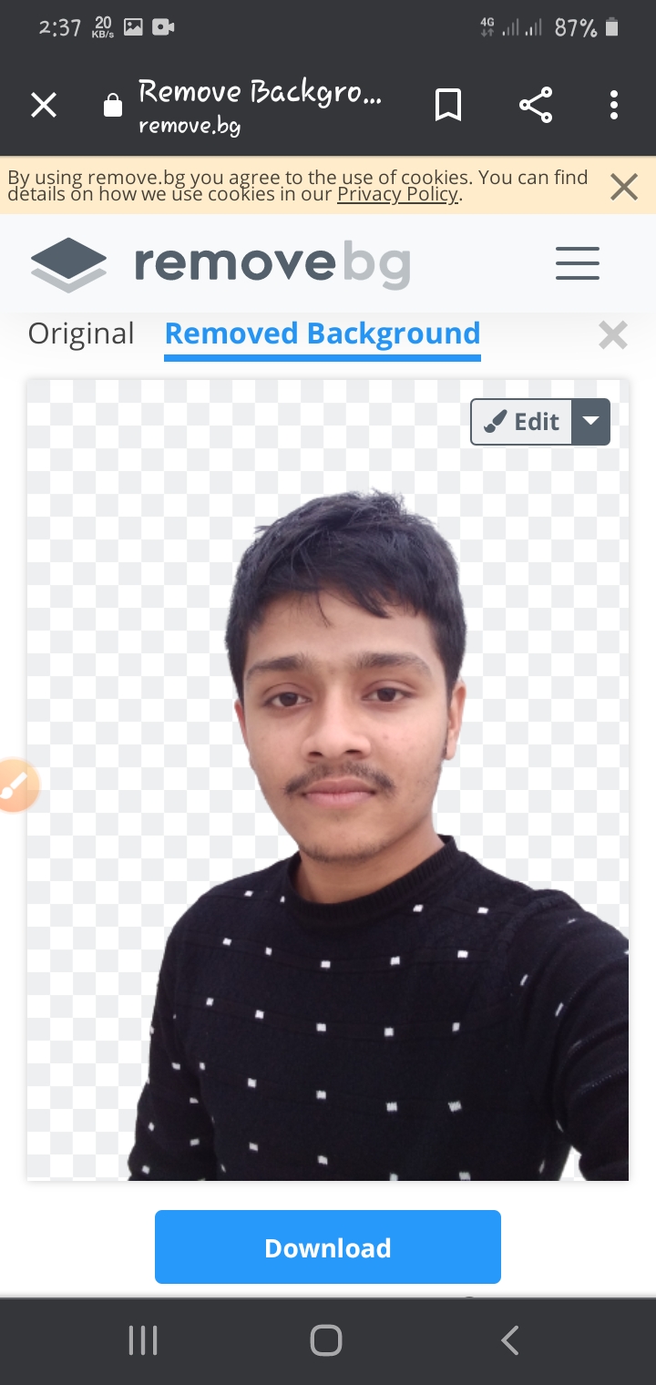 ৬. এরপর ছবি প্রথমে নিচের মতো করে আপলোড হবে অরজিনাল ফটো হিসেবে এবং পরে অটোমেটিক ব্যাকগ্রাউন্ড রিমূভ হবে।