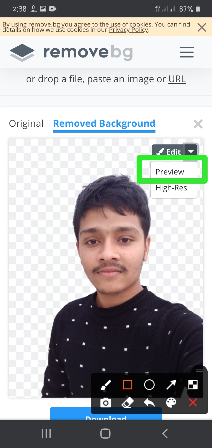 ৭. এখন আপনি ছবিটিকে এখানেই ডাউনলোড করতে পারেন বা ইডিট করতে পারেন। ইডিট করতে হলে Edit এ চাপ দিবেন এবং তারপর প্রিভিউ এ চাপ দিবেন।