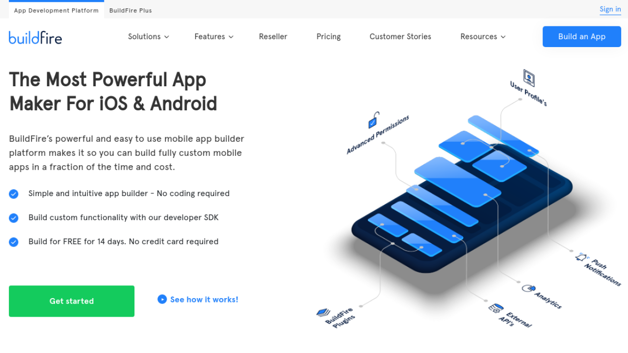 বর্তমান সময়ে BuildFire বাজারের সর্বাধিক জনপ্রিয় এবং বহুমুখী মোবাইল অ্যাপ ডেভেলপমেন্ট সফটওয়ার। এই শক্তিশালী সফটওয়্যারটি যেকোনো ধরনের অ্যাপ্লিকেশন তৈরি করতে ব্যবহার করা যেতে পারে এবং এতে কোন কোডিংয়ের প্রয়োজন নেই।