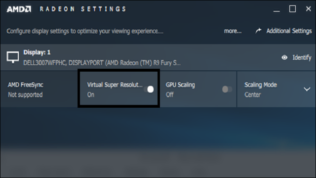 AMD এর ক্ষেত্রে কাজটি খুব সহজেই করে ফেলা যায়, Radeon Settings যান এবং Display সিলেক্ট করে Virtual Super Resolution অপশনটি এনেভল করে দিন।