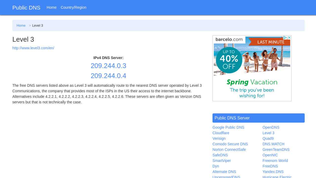 বিশ্বজুড়ে ব্যাপক ভাবে ব্যবহৃত হওয়া আরেকটি DNS সার্ভার হল Level3। বিভিন্ন সাইবার এটাক প্রতিহত করতে এটি মাল্টিপল লেয়ারের সিকিউরিটি মেথড ব্যবহার করে। আপনার ডোমেইন নেম সার্ভিসের জন্য যথেষ্ট নিরাপদ হবে এই Level3 এর DNS সার্ভার।
