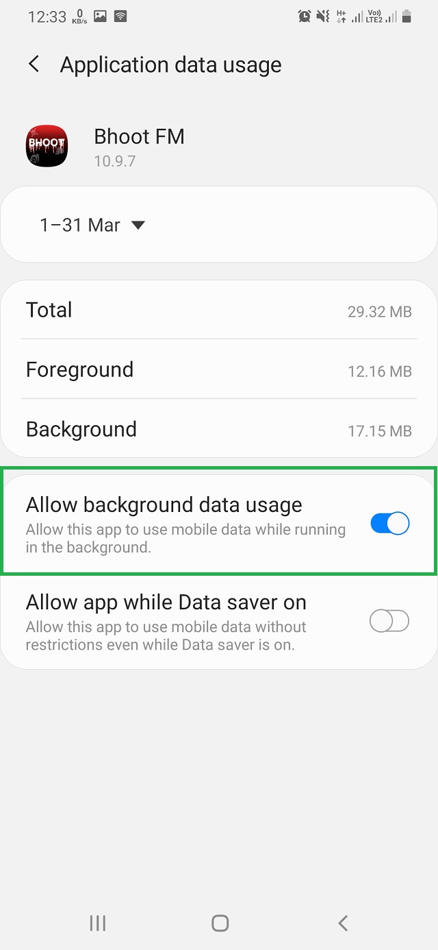 এবার আপনার পছন্দ মত Allow Background Data Usages ডিজেবল করে দিন।