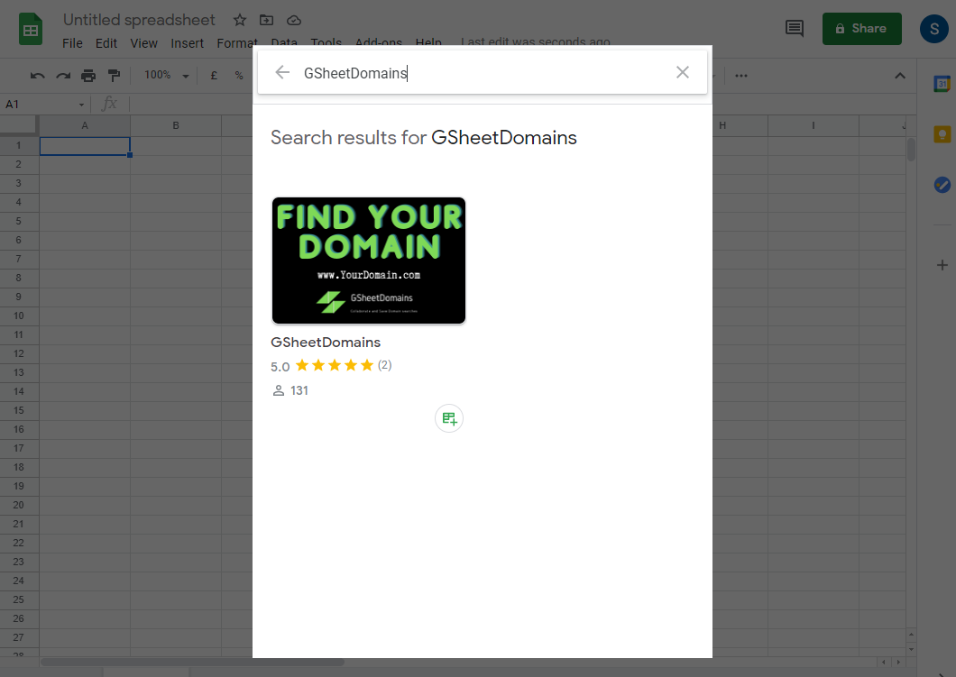 GSheetDomains লিখে সার্চ দিন এবং Add-ons টিতে ক্লিক করুন