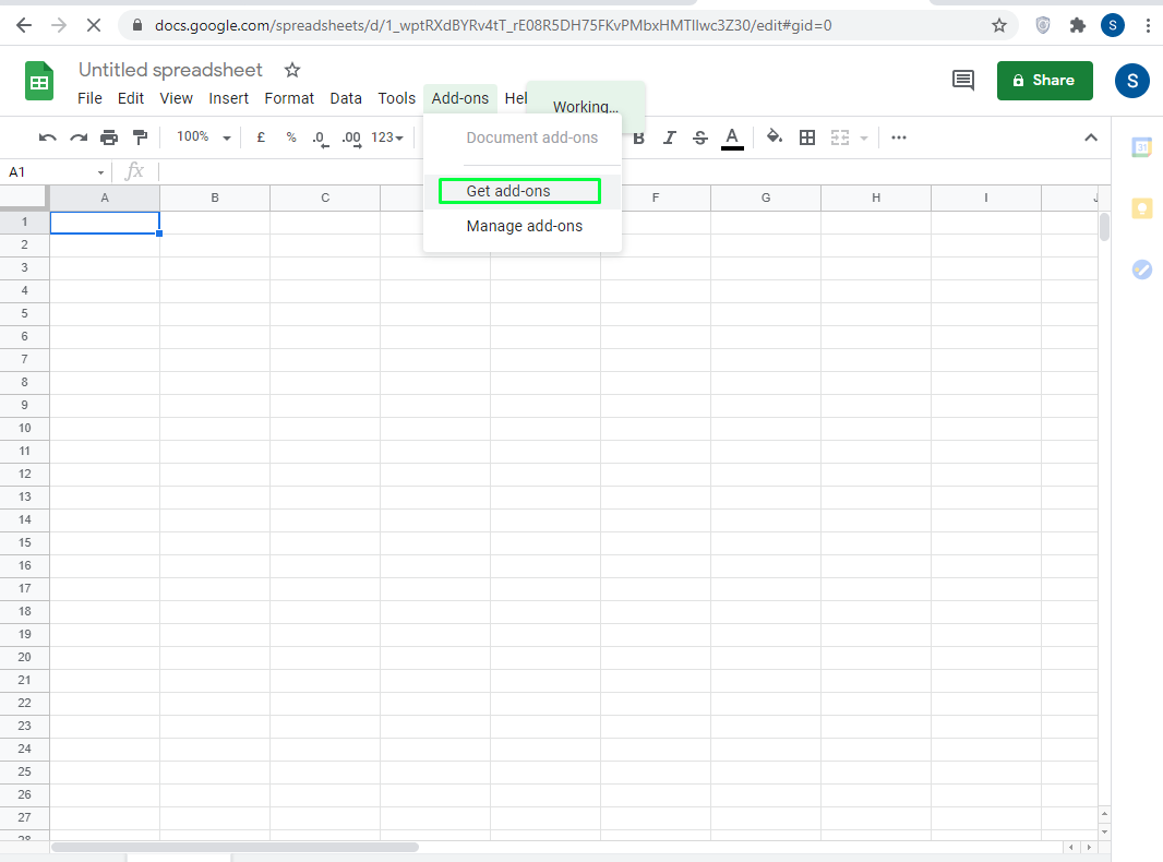 প্রথমে Google Sheet এ যান Addons এ ক্লিক করুন, এবার Get add-ons সিলেক্ট করুন