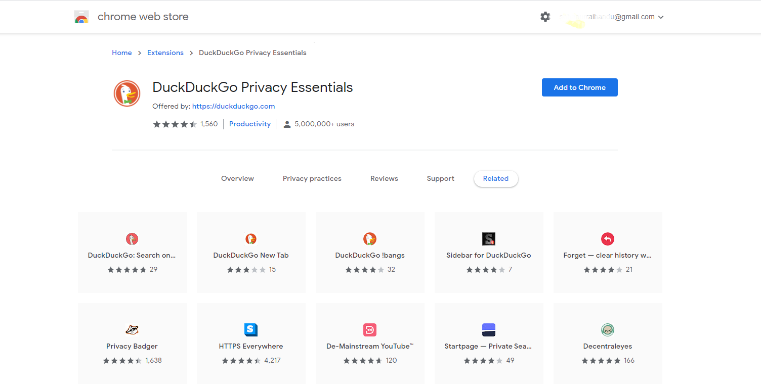 ক্রোম এক্সটেনশন লিংক @ DuckDuckGo Privacy Essentials