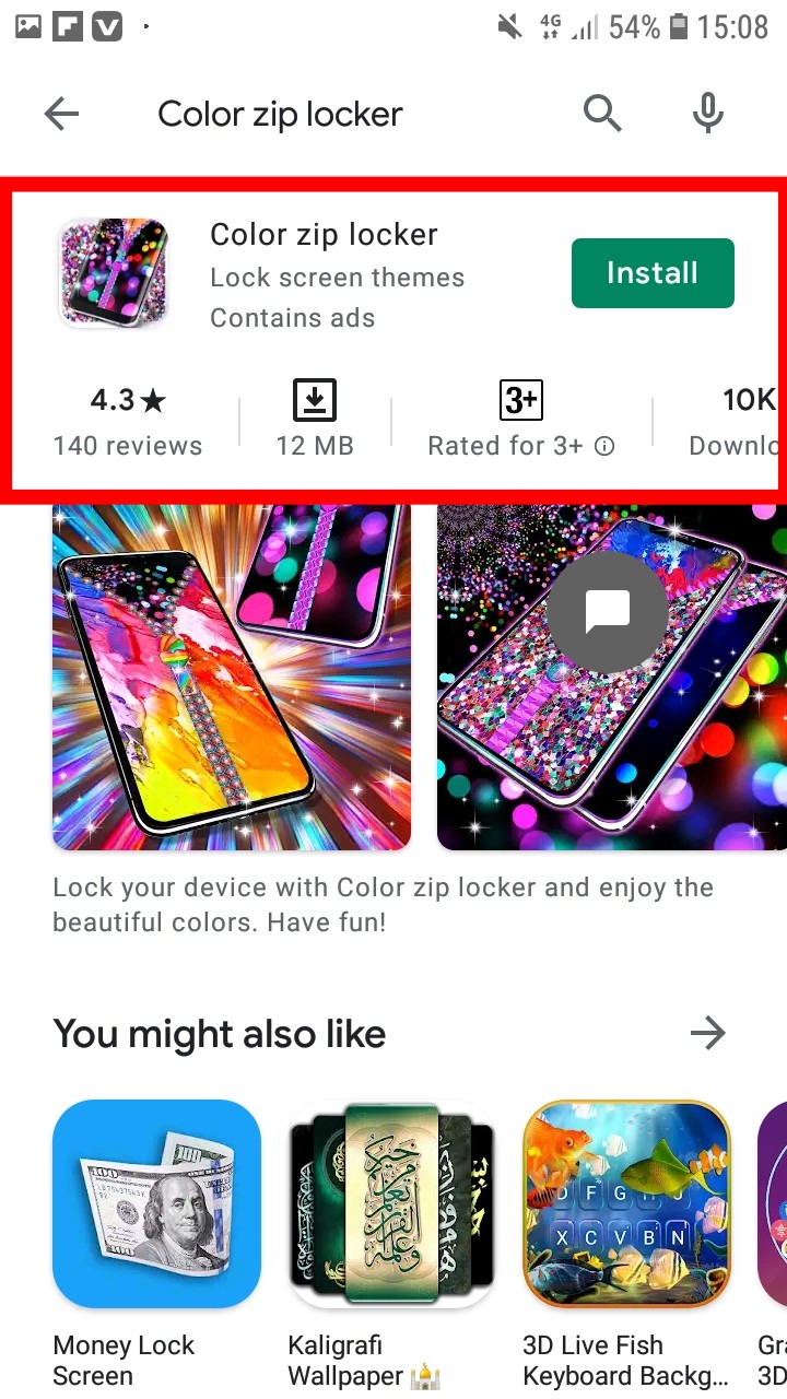 ২. গিয়ে এখানে সার্চ করতে হবে Color zip locker লিখে।