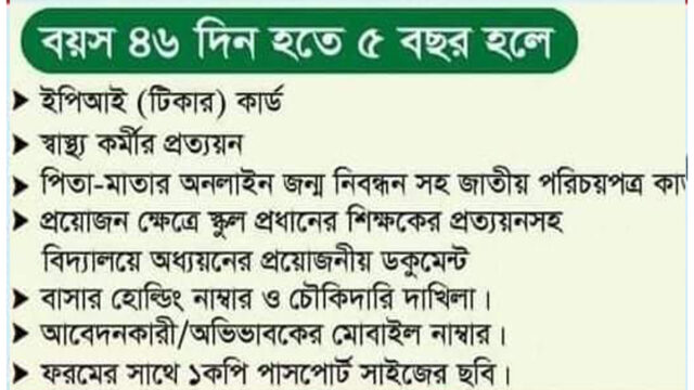 বয়স ৪৬ দিন হতে ৫বছর হলে।
