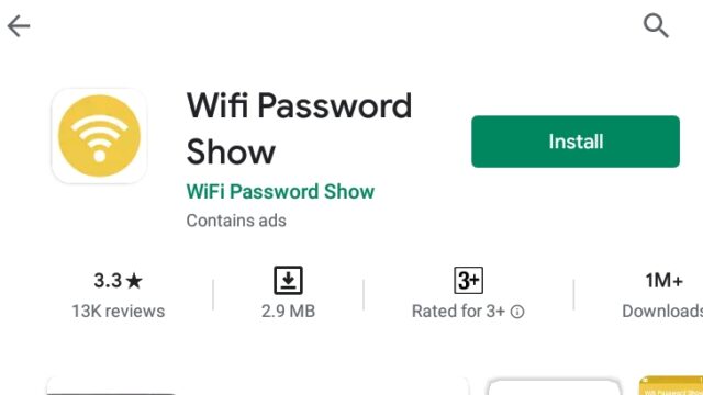 তৃতীয় পদ্ধতিটা হলো ফোনকে রুট করার মাধ্যমে তোমাদের ফোন যদি রুট করা থাকে তাহলে এই পদ্ধতি অনুসরণ করতে পারো। প্লে স্টোরে গিয়ে wifi password show লিখে সার্চ দিলে নিচের ছবির মত যে অ্যাপটি থাকবে সেই অ্যাপ থেকে তোমরা কানেক্টেড ওয়াইফাই এর পাসওয়ার্ড দেখতে পারবে। তবে এই অ্যাপটি কেবল রুট করা ফোনে কাজ করবে। ফোন রুট করা না থাকলে এই অ্যাপটি কাজ করবে না। তবে আমি তোমাদের পরামর্শ দিব ফোনকে রুট করা একদমই recommended না।