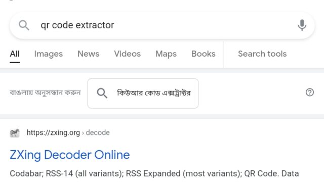 স্ক্রীনশট এ অপ্রয়োজনীয় অংশ বাদ দিয়ে crop করে শুধুমাত্র কোডের ছবিটি নিতে হবে। এরপর ব্রাউজারে গিয়ে qr code extractor লিখে সার্চ দিতে হবে। যেই পেজটি ওপেন হবে সেখান থেকে ZXing decoder লেখাটি খুঁজে বের করতে হবে। এই লেখার উপর ক্লিক করলে আরেকটি পেজ ওপেন হবে। সেখান থেকে select a file এ ক্লিক করলে গ্যালারিতে নিয়ে যাবে। গ্যালারি থেকে QR কোডটি সিলেক্ট করলে আবার আগের পেইজে নিয়ে আসবে। সেখান থেকে submit এ ক্লিক করলে কোডটি decode হয়ে যাবে এবং তোমাদের সামনে যেই পেজটি ওপেন হবে সেই পেইজের নিচে তোমরা পাসওয়ার্ডটি দেখতে পারবে।