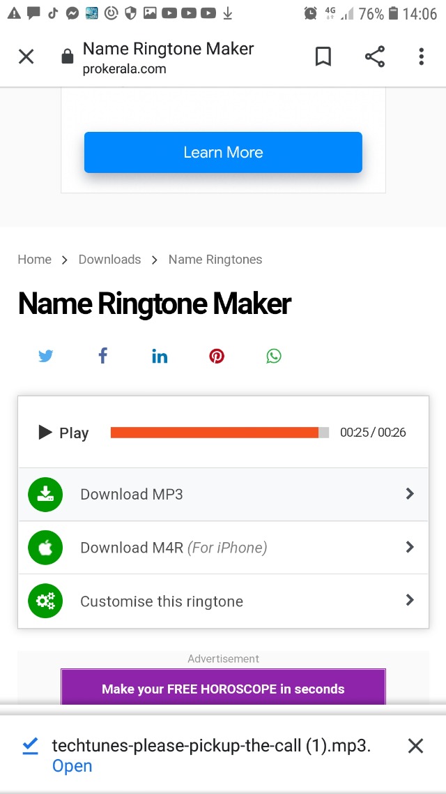 ওখানে ক্লিক করার পর আপনার রিংটোনটি ডাউনলোড হয়ে যাবে। এখন আপনি আপনার রিংটোনটি আপনার ফোনে সেট করে নেবেন।
