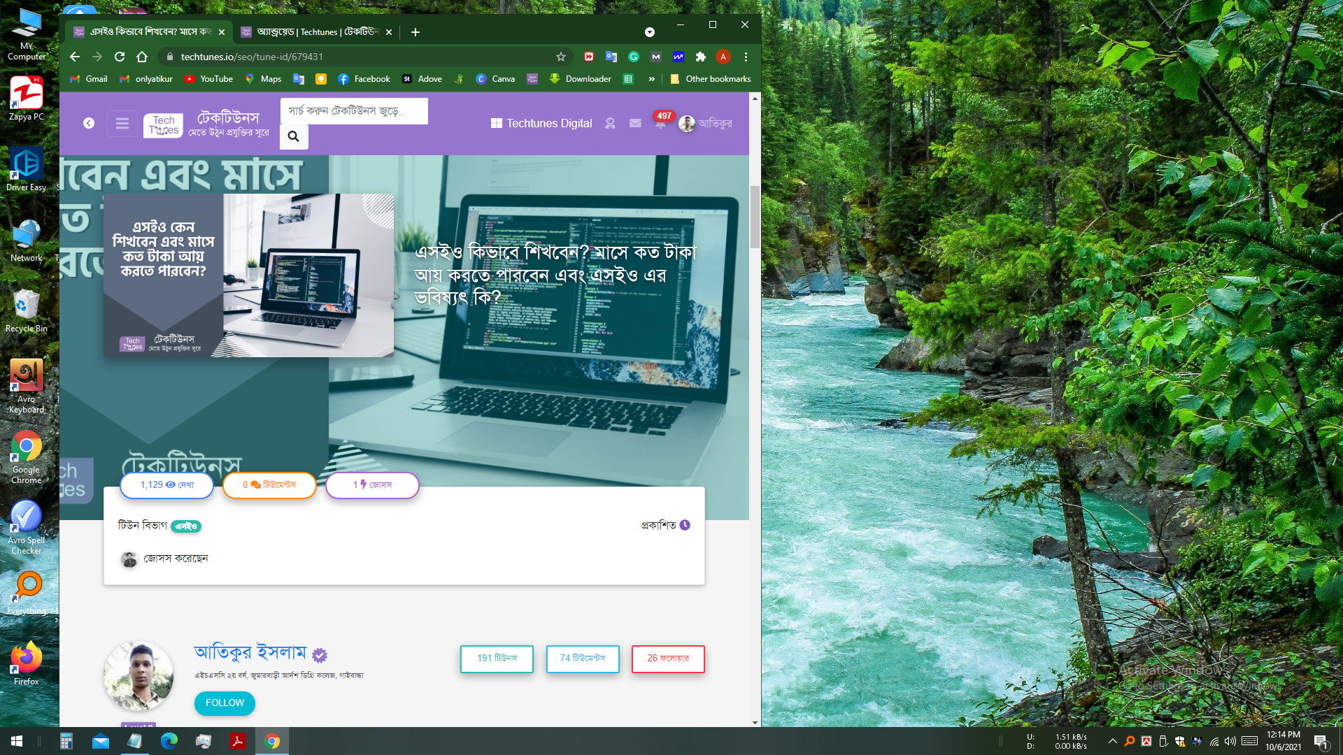 আমি মো আতিকুর ইসলাম। কন্টেন্ট রাইটার, টেল টেক আইটি, গাইবান্ধা। বিশ্বের সর্ববৃহৎ বিজ্ঞান ও প্রযুক্তির সৌশল নেটওয়ার্ক - টেকটিউনস এ আমি 5 বছর যাবৎ যুক্ত আছি। টেকটিউনস আমি এ পর্যন্ত 566 টি টিউন ও 94 টি টিউমেন্ট করেছি। টেকটিউনসে আমার 64 ফলোয়ার আছে এবং আমি টেকটিউনসে 3 টিউনারকে ফলো করি।