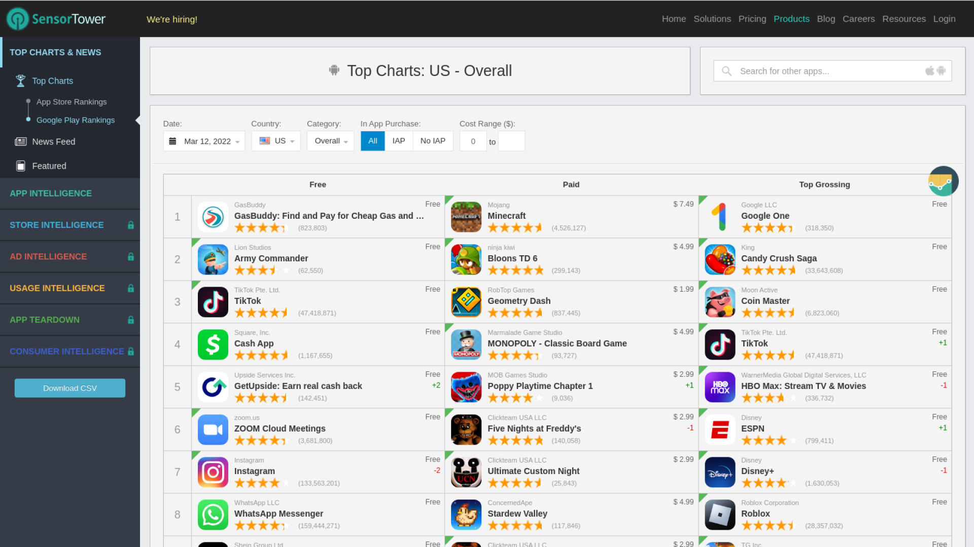 এই সাইটটিও আপনাকে যেকোনো তালিকা থেকে CSV (CSV-comma-separated values) ফাইল ডাউনলোড করতে দেয়। যা আপনাকে একাধিক অ্যাপ এর বিষয়ে এনালাইসিস করতে সহযোগিতা করবে। কিন্তু, আপনি যদি উন্নত দক্ষতা অর্জন করতে চান, তাহলে আপনি স্টোর বুদ্ধি ওপেন করবেন যা আপনাকে অ্যাপ্লিকেশন এর ইনকাম Ranking দেখাবে। যা দেখে আপনি সহজেই বুঝতে পারবেন কোন অ্যাপ্লিকেশন কি রকম সফল হয়েছে অর্থাৎ অ্যাপ্লিকেশনটি বেশি আয় করছে না কম আয় করছে তা জানতে পারবেন।