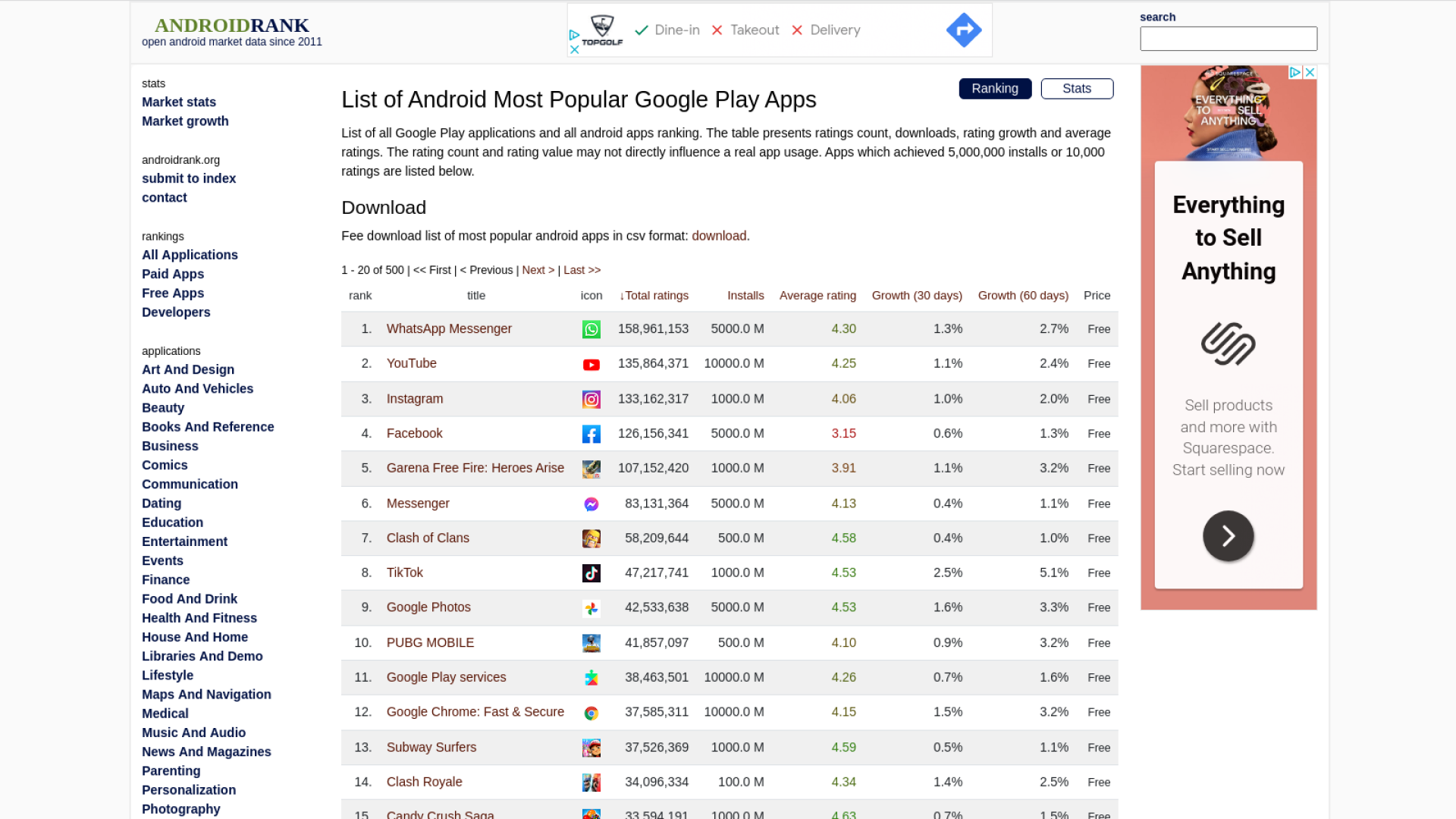 এই ওয়েবসাইটে অ্যাপ্লিকেশনের Ranking তালিকাটা ব্যাপক। এই ওয়েবসাইটে অ্যাপ্লিকেশন গুলো Ranking করা হয় সর্বশেষ পাওয়া তথ্য অনু্যায়ী। অর্থাৎ, কোন অ্যাপের তথ্য তাৎক্ষণিক পরিবর্তনের সাথে সাথে, সেটির তথ্য ও হালনাগাদ করে থাকে এই ওয়েবসাইট।