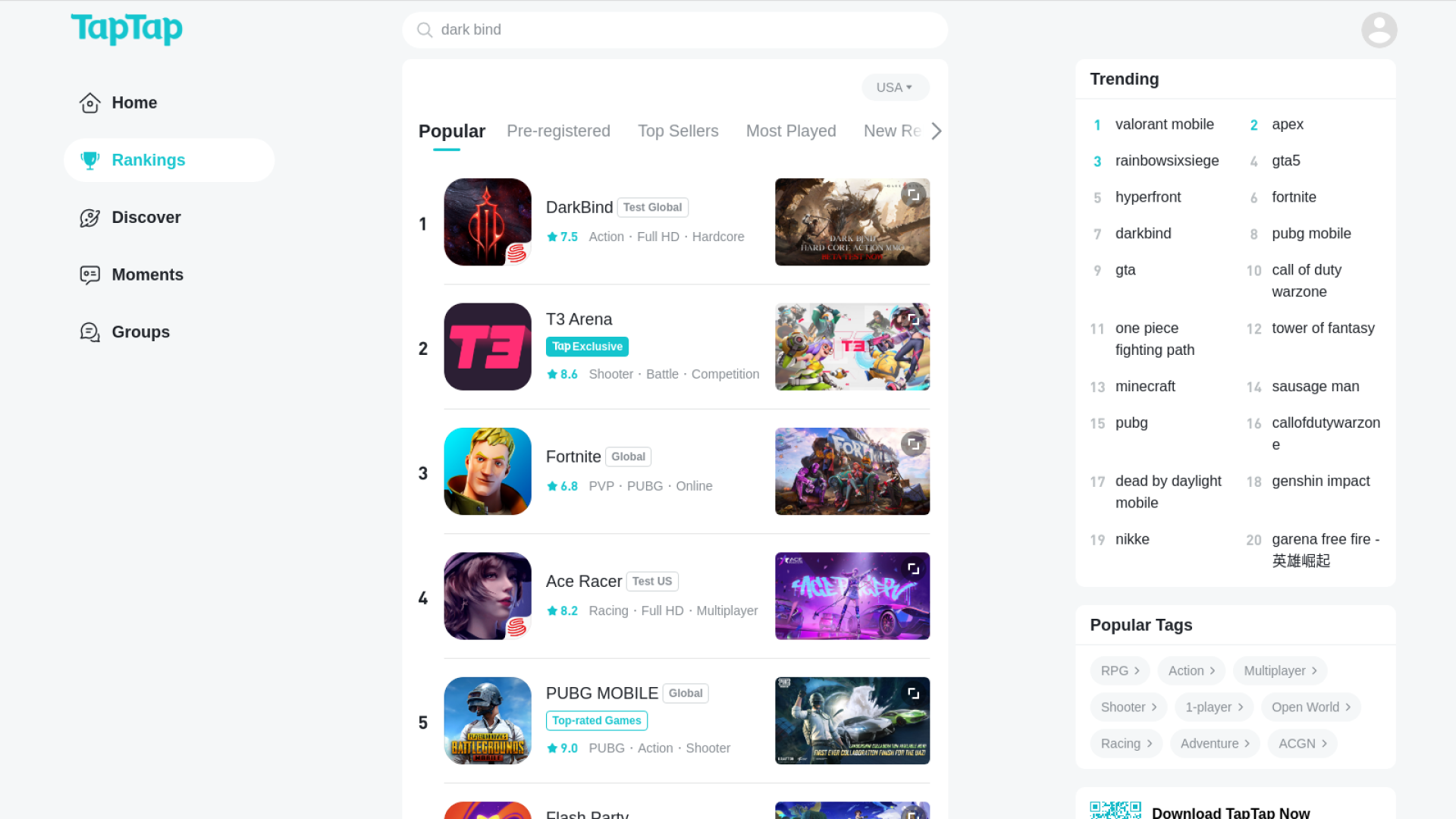 TapTap অ্যান্ড্রয়েড গেম গুলোর ব্যক্তিগত রিভিউ বর্ণনা করে। এছাড়াও গেম গুলোর Ranking করে এবং সেটির Description বা বর্ণনা প্রদান করে। এই ওয়েবসাইটে, আপনি কোন অ্যাপের Ranking কে ফিল্টার করতে পারেন নির্দিষ্ট দেশের উপর ভিত্তি করে। অর্থাৎ, ফিল্টারিং করে দেখতে পারেন, বর্তমানে কোন দেশে কোন গেমটি জনপ্রিয়।
