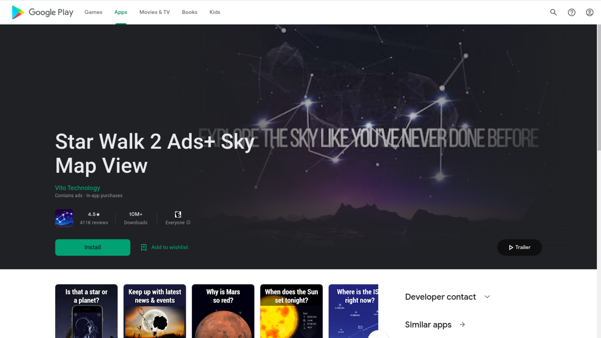 রাতের আকাশে রাতা দেখার দারুণ একটি অ্যাপ হচ্ছে Star Walk 2। এটির মাধ্যমে আপনি যেকোনো সময় রাতের আকাশ এক্সপ্লোর করতে পারবেন। অ্যাপটি ওপেন করলে এটি লোকেশন এক্সেস চাইবে, এক্সেস দেয়ার পর এটি আপনার লোকেশনের আকাশ দেখাবে এবং আপনি তারকারাজি দেখতে পারবেন।