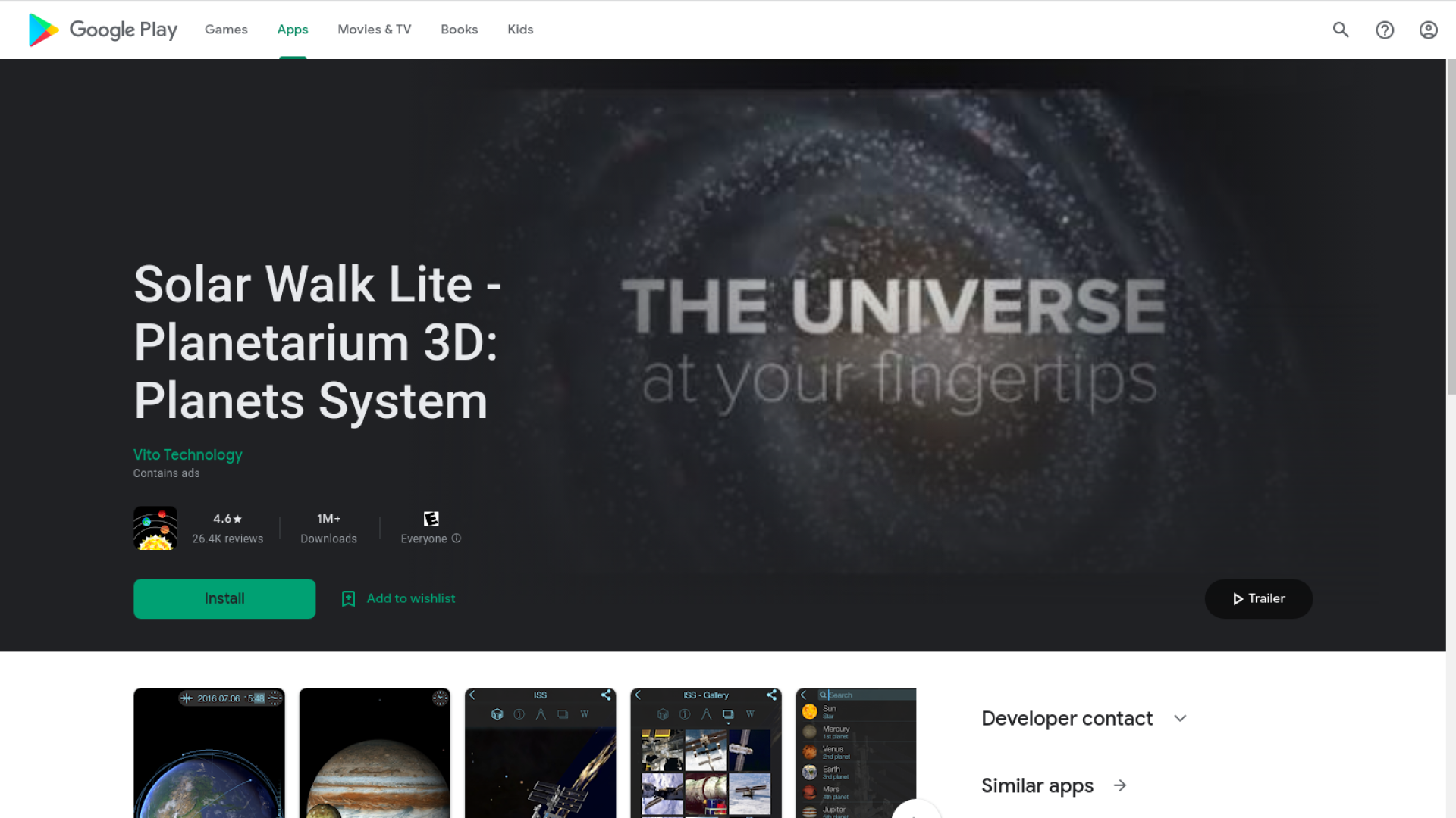 আমাদের সৌরজগত এর 3D মডেলের উপর তৈরি একটি অ্যাপ হল Solar Walk Lite। শিশুরা এবং প্রাপ্তবয়স্করা এই অ্যাপ এর মাধ্যমে 3D মডেলে সৌরজগত এক্সপ্লোর করতে পারবে। শিক্ষকরা চাইলে এই অ্যাপ দিয়ে শিক্ষার্থীদের সৌরজগত সম্পর্কে ধারণা দিতে পারবে। আপনি চাইলে বিভিন্ন ডাইমেনশনে গ্রহ গুলো কাছ থেকে দেখতে পারবেন। এটি একটি ফ্রি অ্যাপ এবং দারুণ কাজ করে।