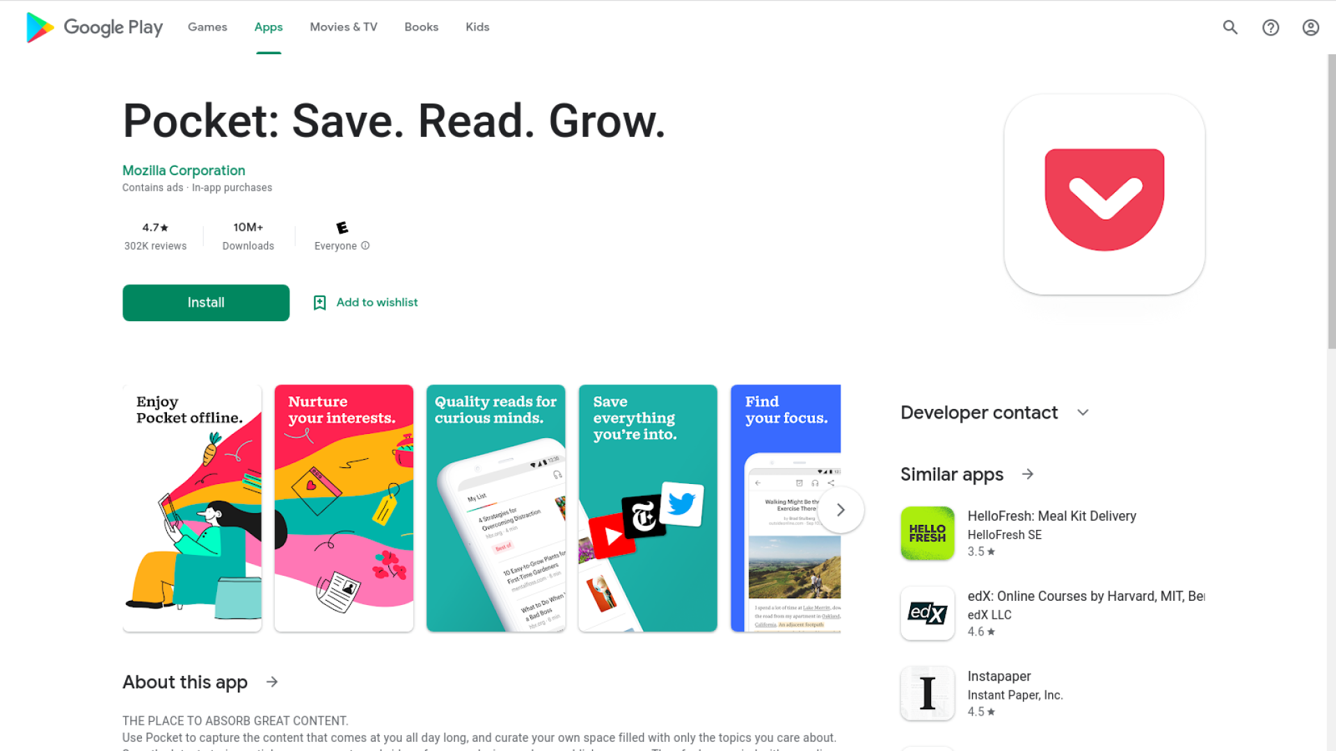 ইন্টারনেট ব্রাউজ করার সময় এমন অনেক আর্টিকেল পাই যেগুলো আমাদের বেশ প্রয়োজনীয় কিন্তু সময়ের অভাবে পড়া হয় না। সেই আর্টিকেল গুলো পরবর্তীতে পড়তে আপনাকে সাহায্য করবে Pocket অ্যাপ৷ অফলাইনে ইচ্ছে মত আর্টিকেল সেভ রাখতে পারেন এই অ্যাপ এর মধ্যে। এর একই সাথে একটা ডেক্সটপ এক্সটেনশনও রয়েছে।