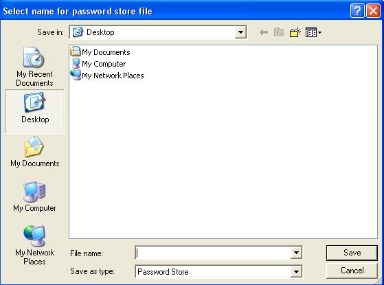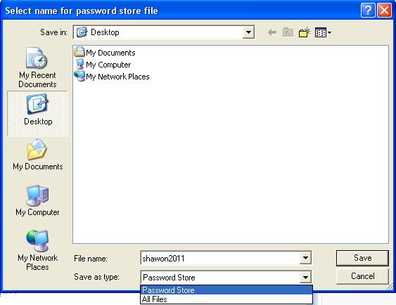 ৩। এখানে File name ঘরে আপনার একটি নাম দিন এবং Save as type ঘরে Password Store সিলেক্ট করে Save বাটন এ ক্লিক করুন (নিচের ছবিটা দেখুন)