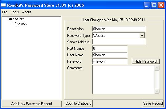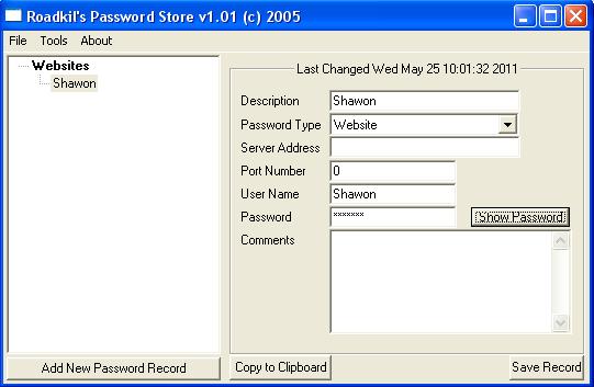৬। এরপর Roadkill's Password Store v1.01 (c) 2005 নামের একটি উইন্ডো আসবে।