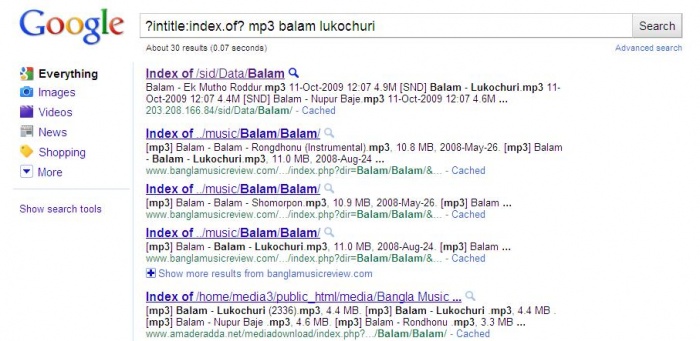 এভাবে আমরা server এ প্রবেশ করে ডাইরেক্ট ডাউনলোড করতে পারি । এছাড়া আমরা extension পরিবর্তন করে বিভিন্ন ফাইল ডাউনলোড করতে পারি।যেমন ebooks এর জন্য pdf ,ছবি এর জন্য avi ইত্যাদি । শুধু ?intitle:index.of? mp3 এর mp3 এর পরিবর্তনে যে extension টি চাই সেই extension টি লিখতে হবে ।