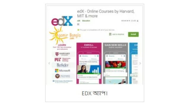 ১। Edx : এটি একটি ফ্রি ইউনিভার্সিটি আপনি বলতে পারেন। এই অ্যাপ ইন্সটল করে এবং রেজিস্ট্রেসন করে আপনি কোন রকম খরচ ছাড়াই হার্ভার্ড ও এমআইটির মত স্বপ্নের বিশ্ববিদ্যালয় গুলির ফ্রি কোর্স। যেসব ছাত্র ছাত্রী পরীক্ষার্থী তারা এই সব কোর্সগুলি রেফারেন্স হিসেবে ব্যবহার করতে পারেন। এখানে বিশ্বের খ্যাত নামা শিক্ষকরা প্রতিটা বিষয়কে এত সহজ করে বুঝিয়েছে যে আপনার পড়াশোনার ক্ষেত্রে অনেক সহায়ক হবে।