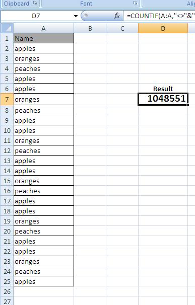 A কলাম বলতে আমি এই sheet এর শুরু থেকে শেষ সেলটি পর্যন্ত সিলেক্ট করেছি | আপনারা পুরো কলাম select না করে যতটুকু সেল এ ডাটা আছে ততটুকু select করতেও পারেন, যেমন : =COUNTIF(A2:A25,"apples")