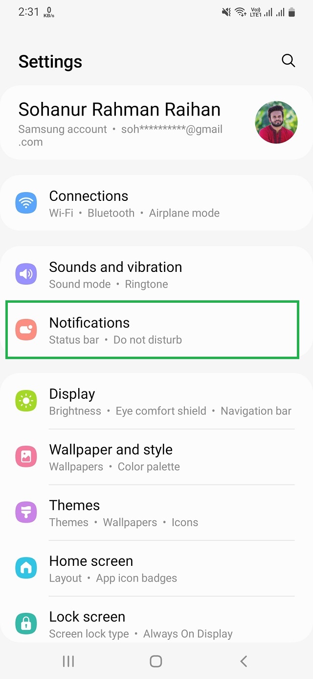 প্রথমে ফোনের Settlings এ চলে যান। Notifications এ ক্লিক করুন।
